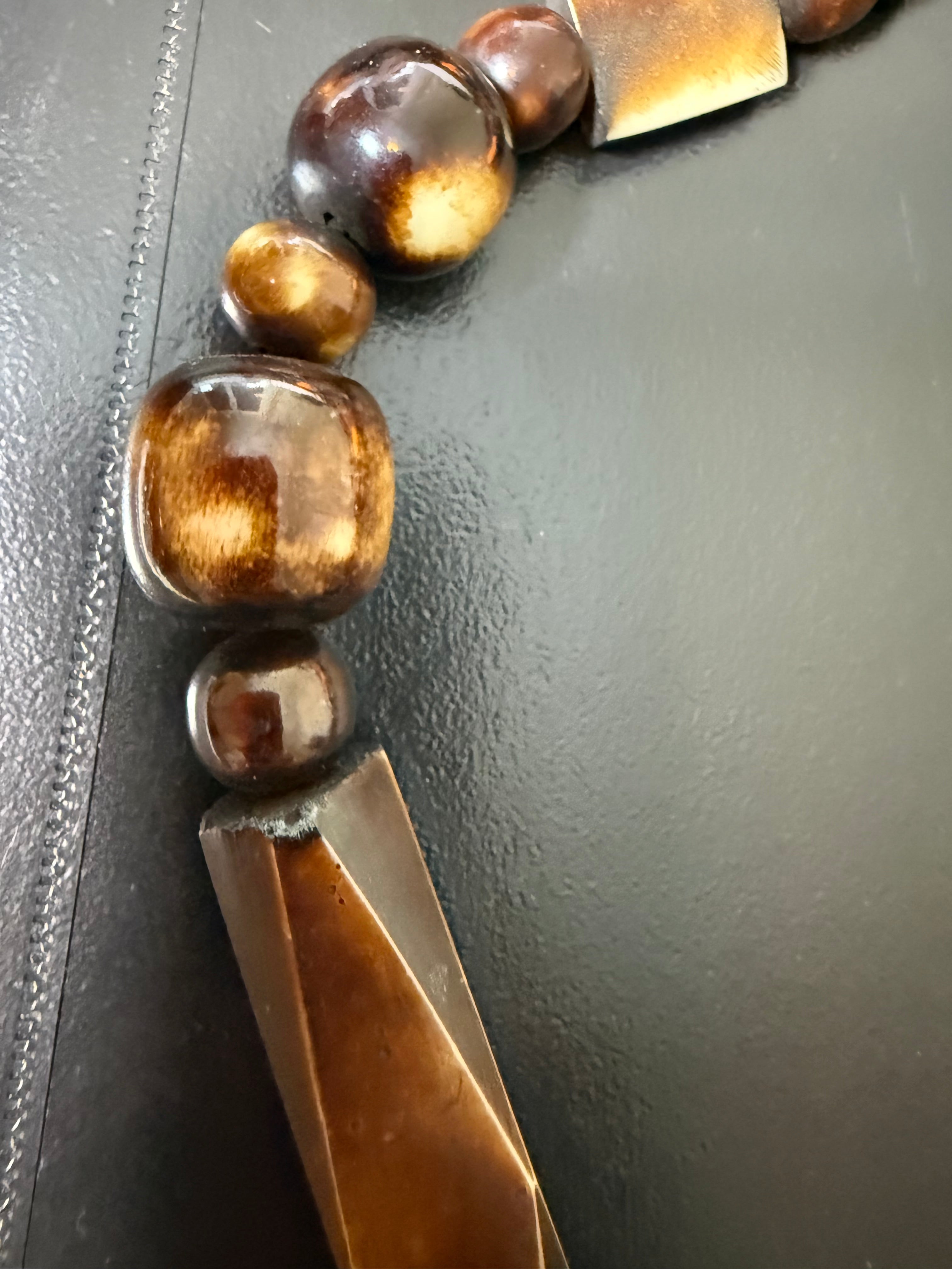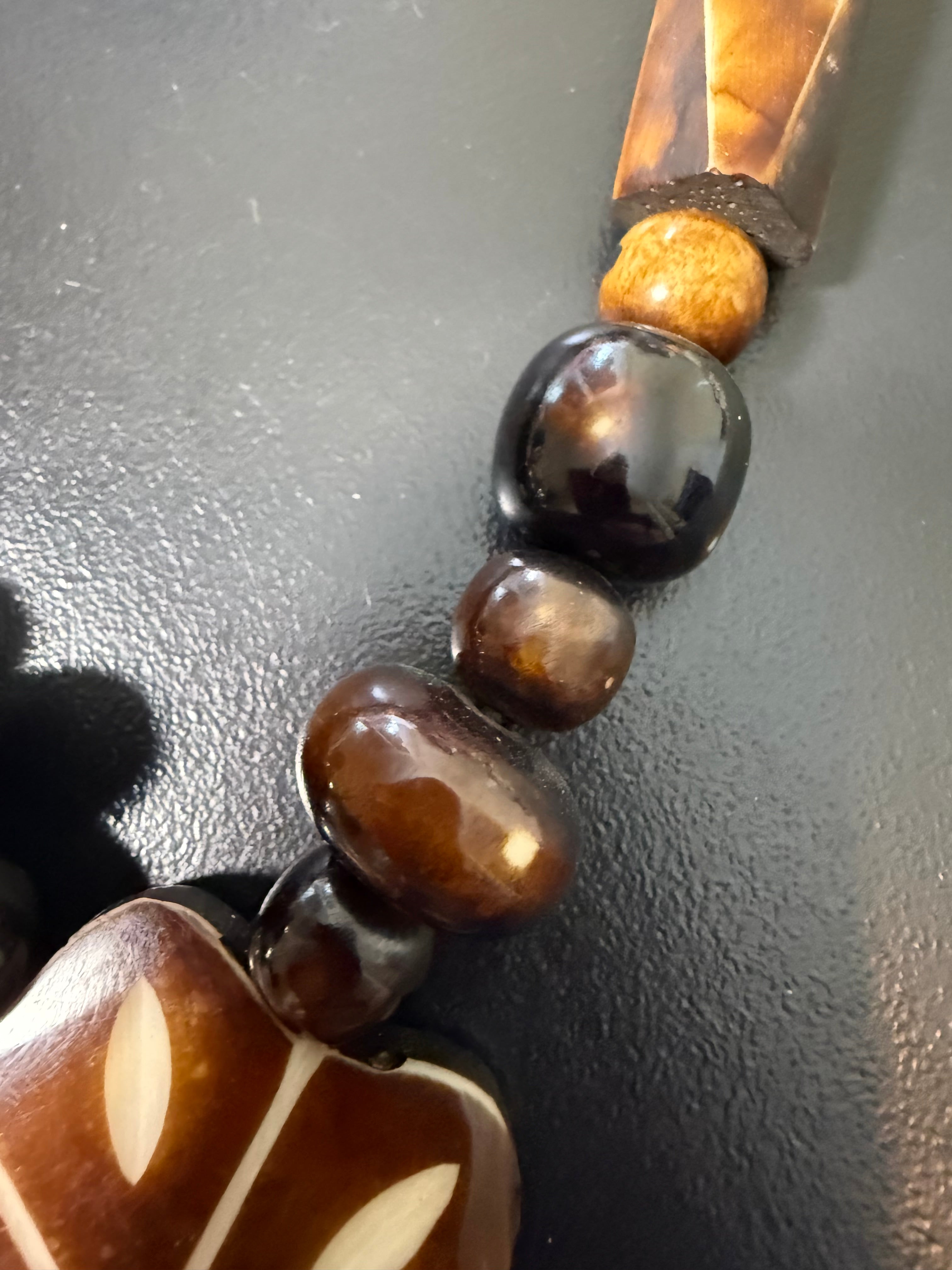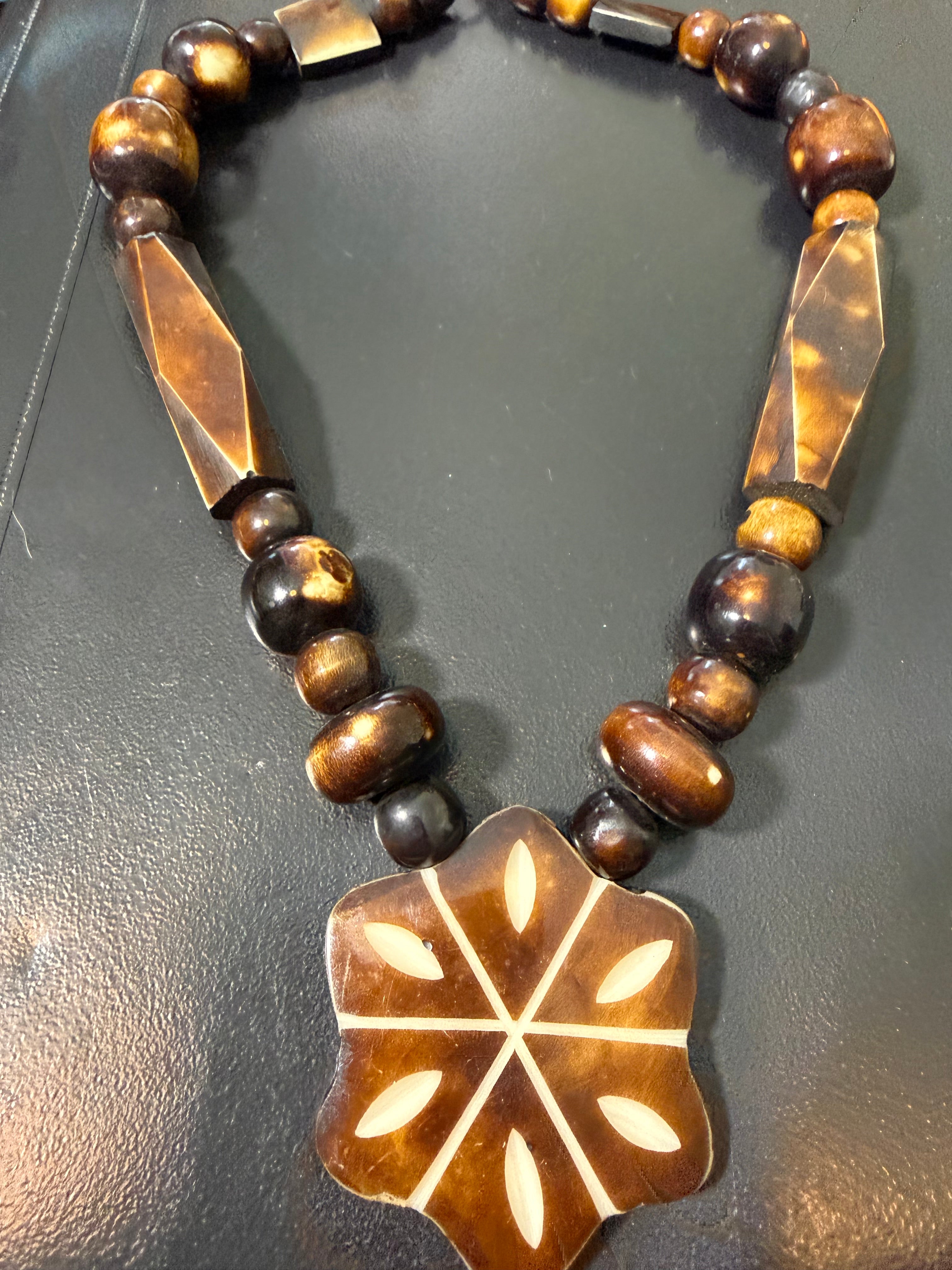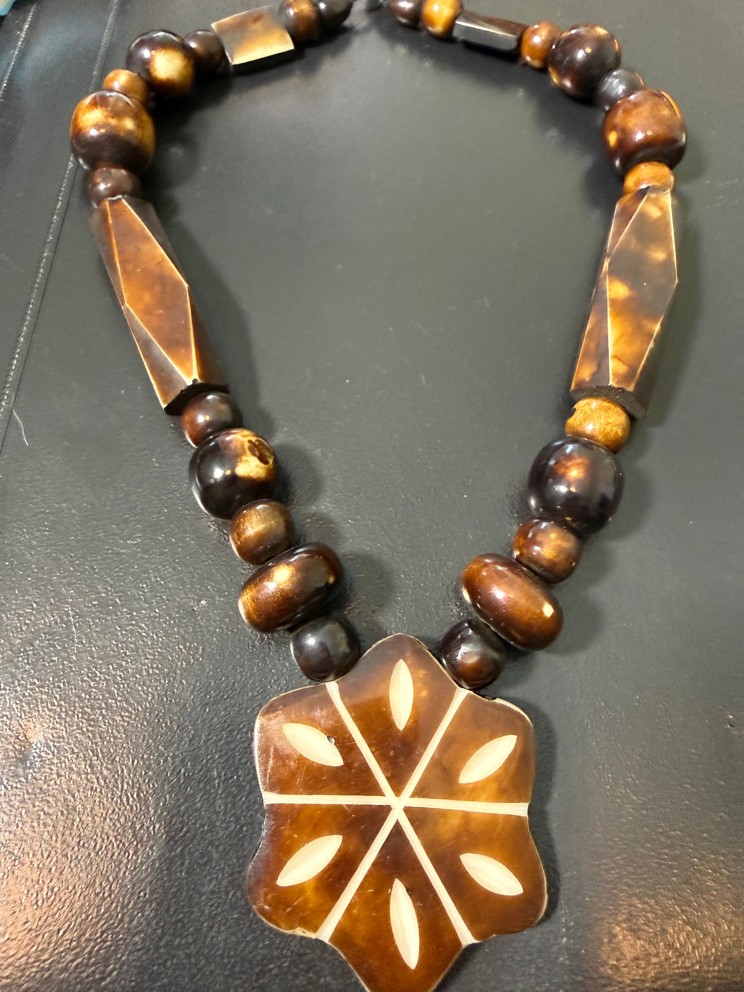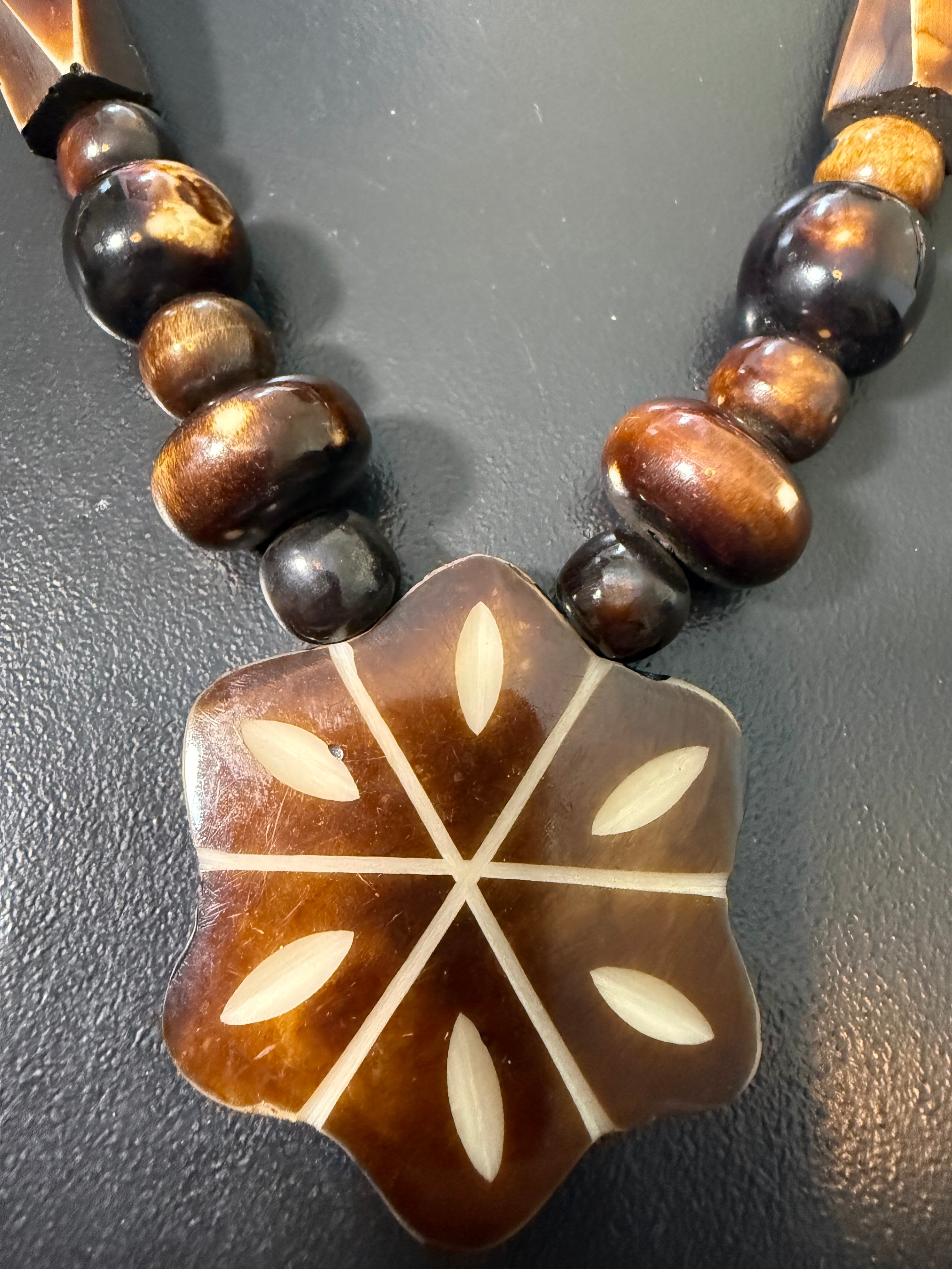 Beau collier ethnique bois et nacre
