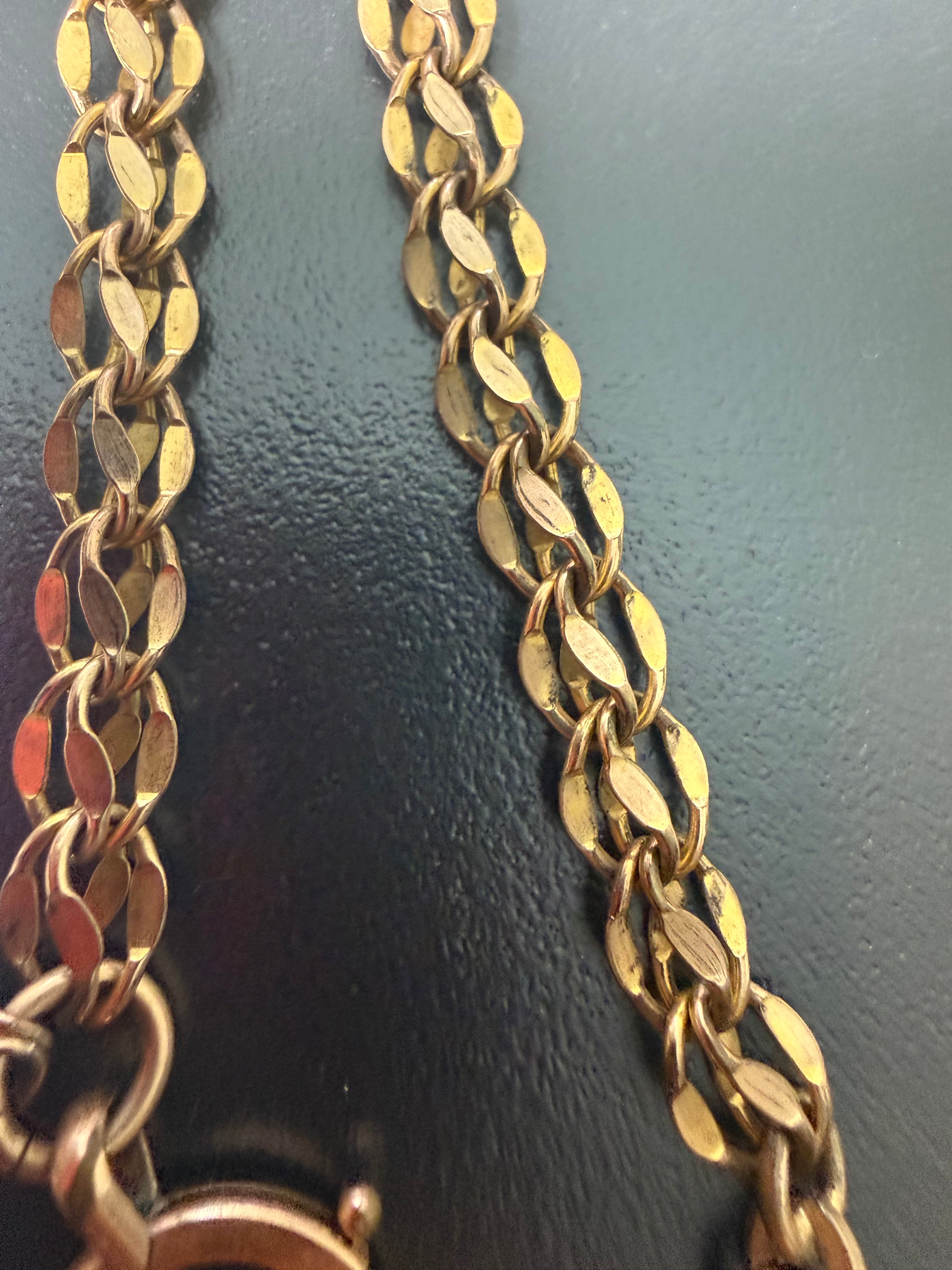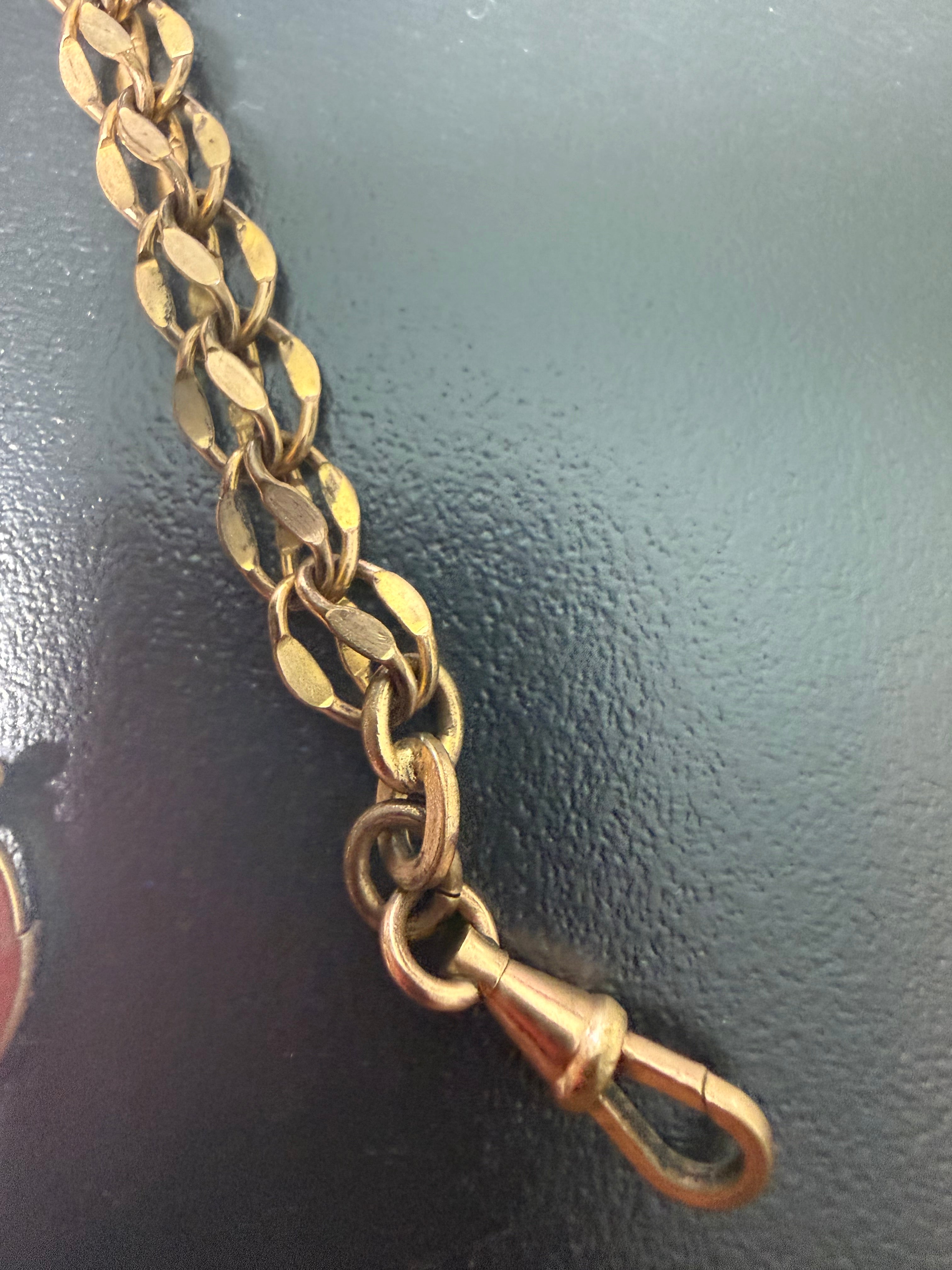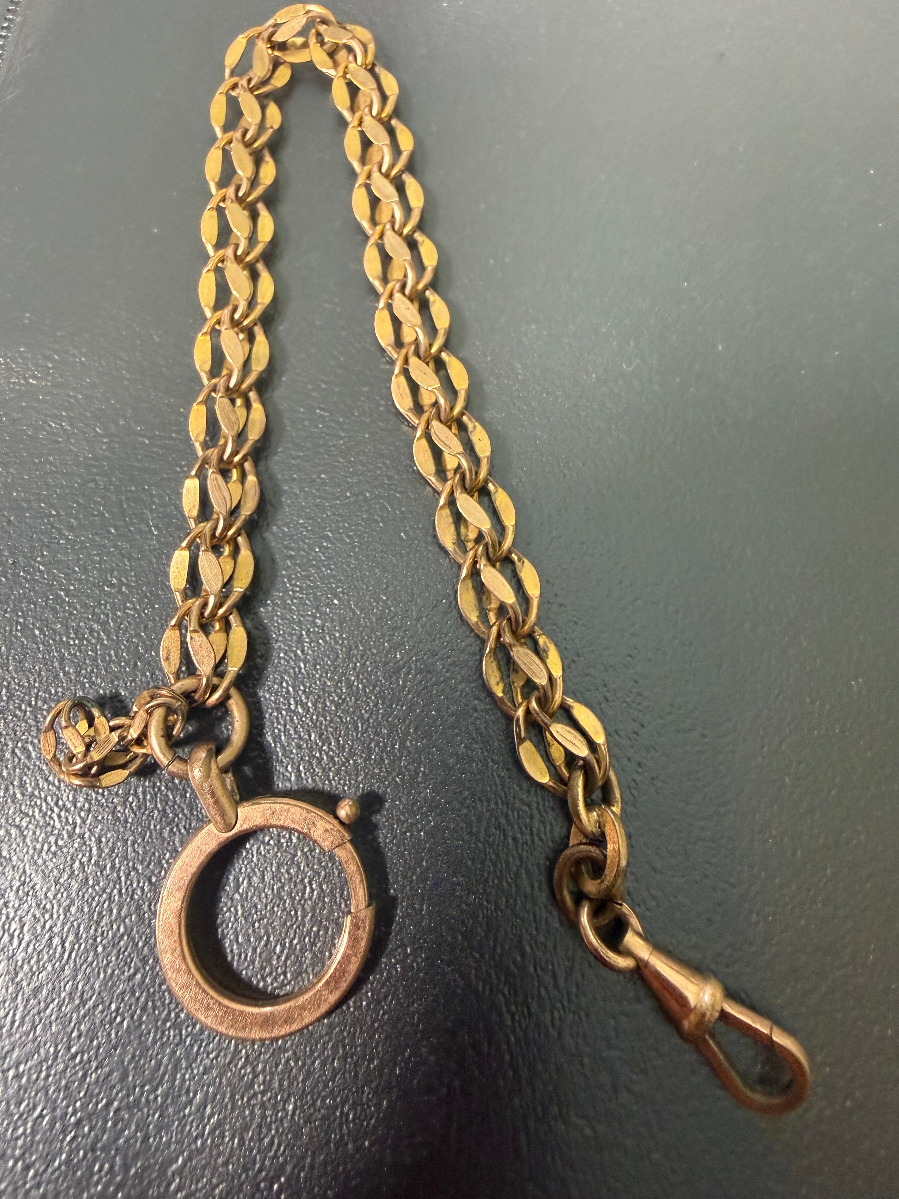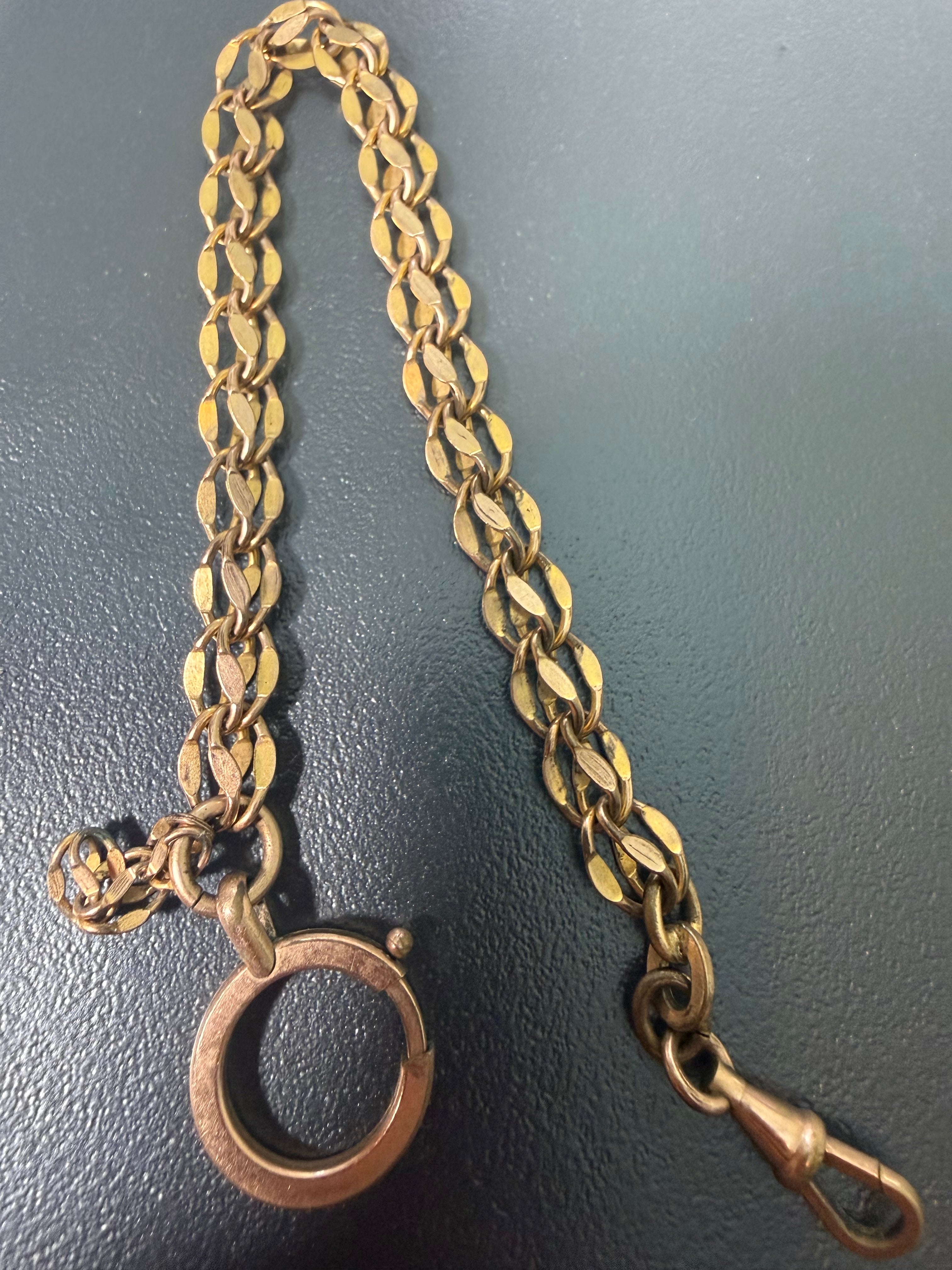 Chaîne de montre ancienne en plaqué or poinçonné longueur 25 cm largeur 8 mm