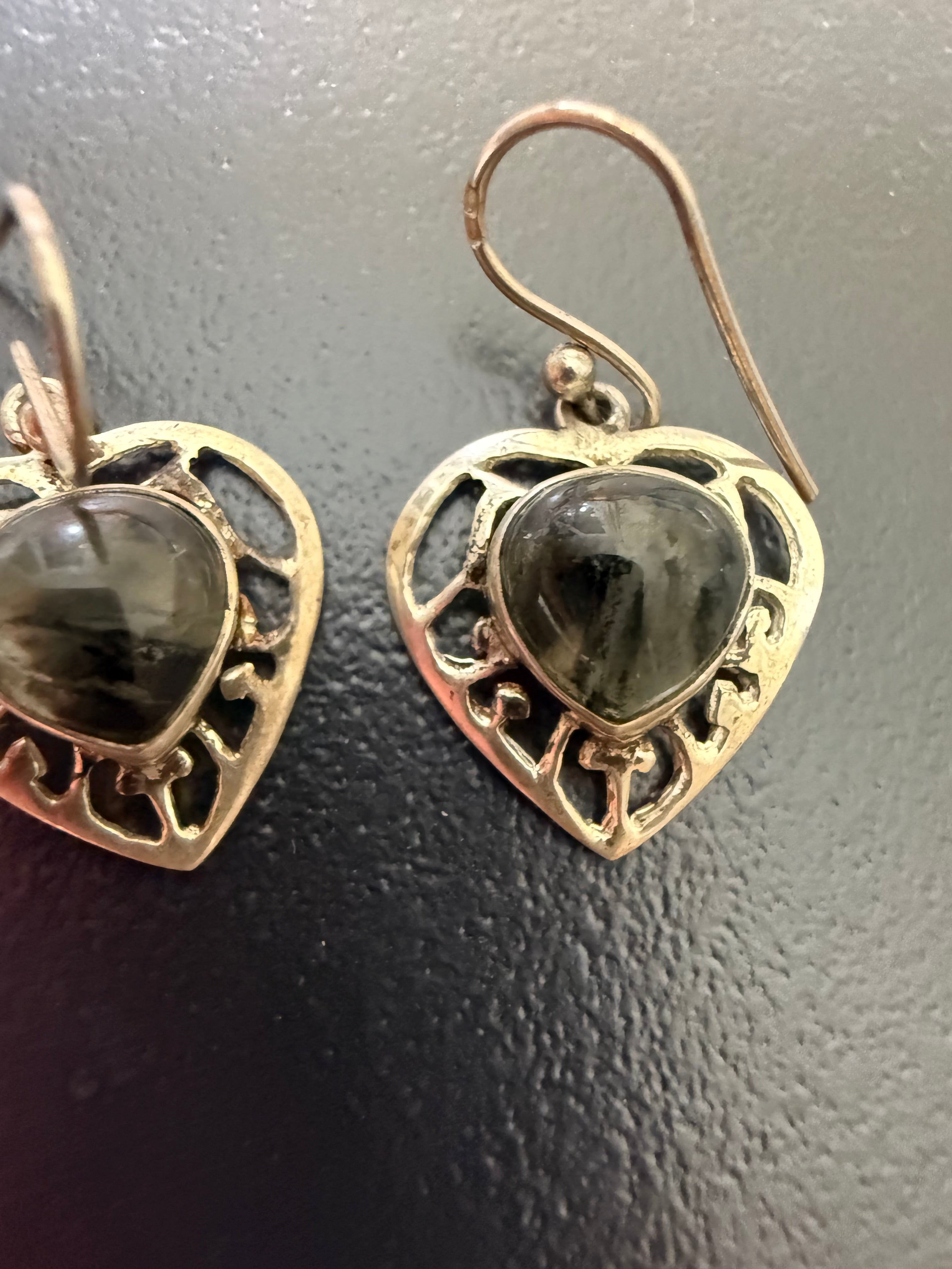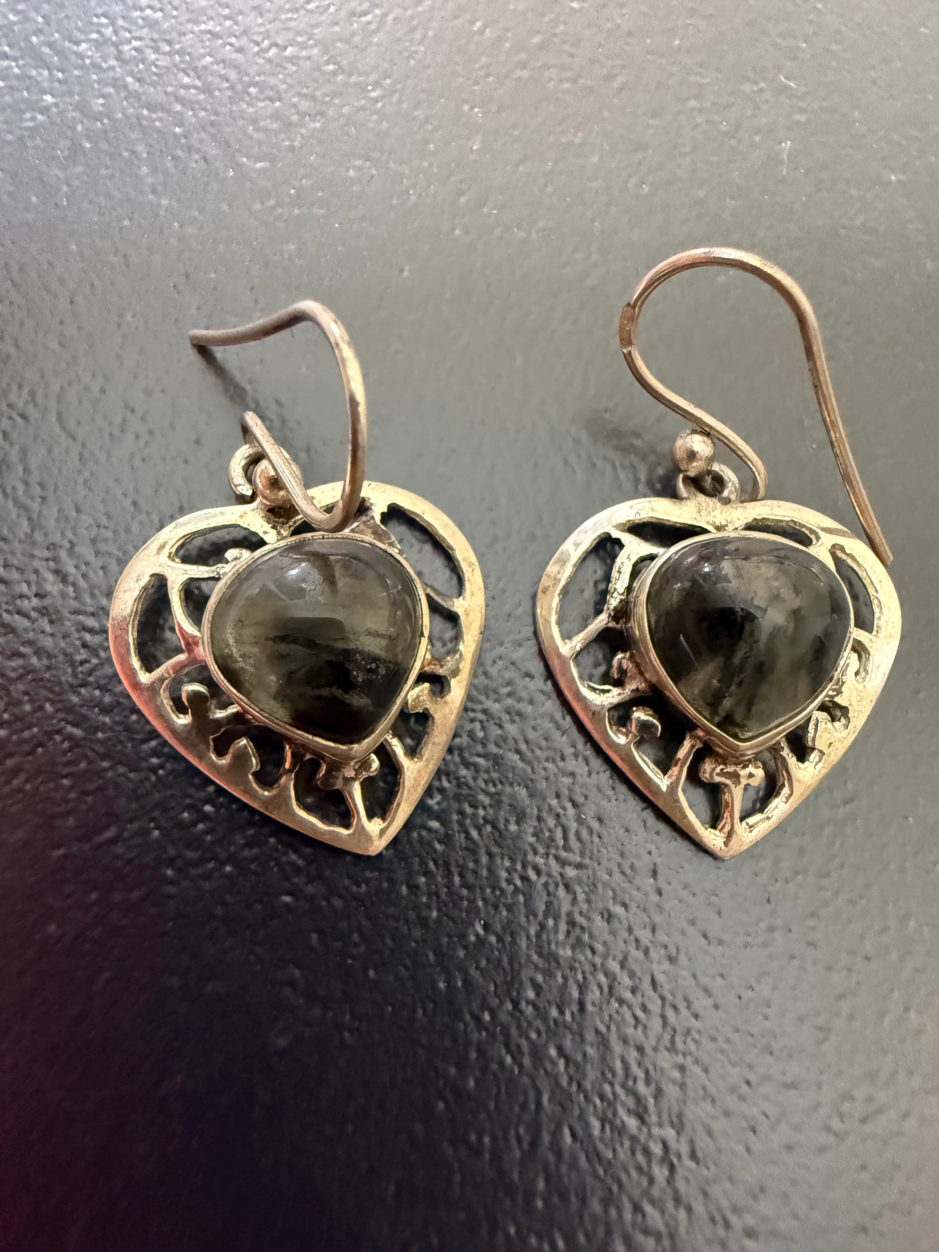 Belles boucles d oreilles argent 925 et agate mousse poids brut 4,57 grammes -2,7 cm sur 1,7 cm