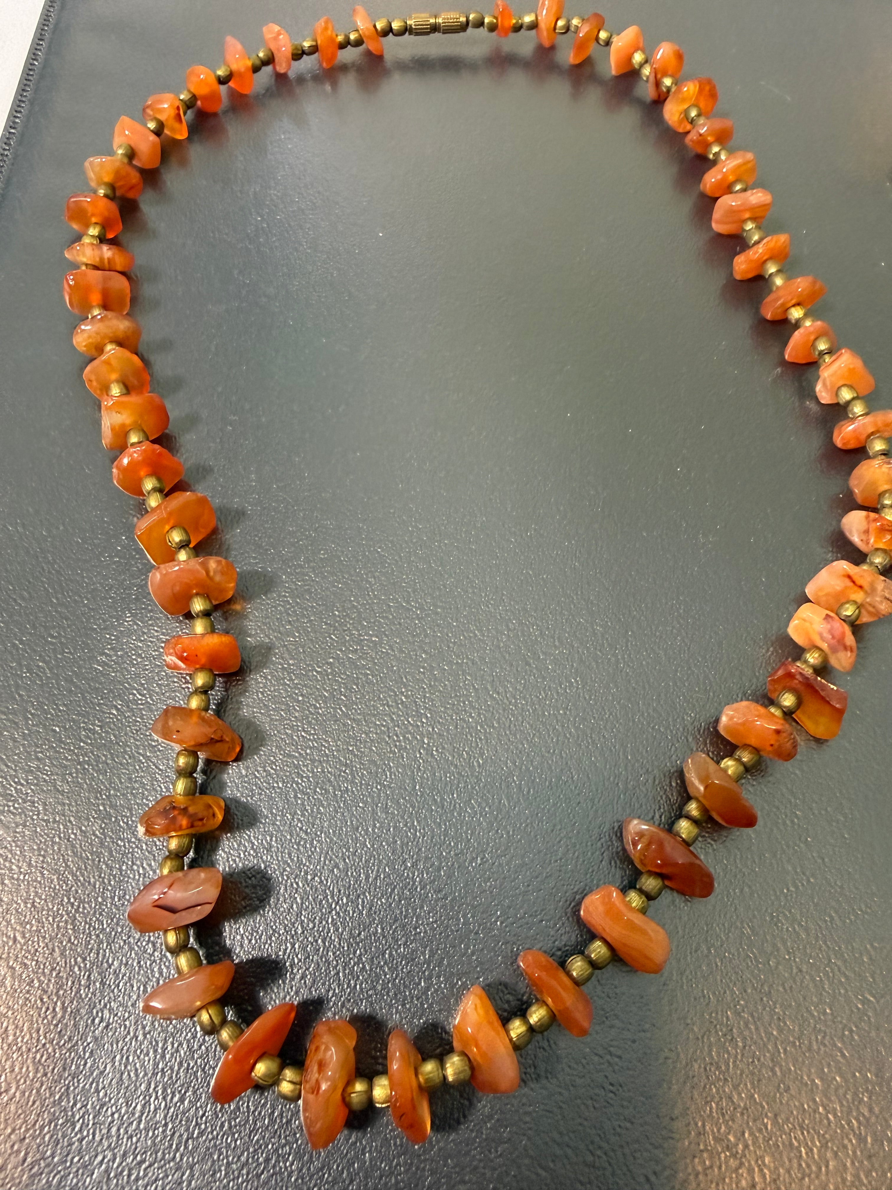 Joli collier en cornaline longueur 52 cm largeur moyenne 1 cm