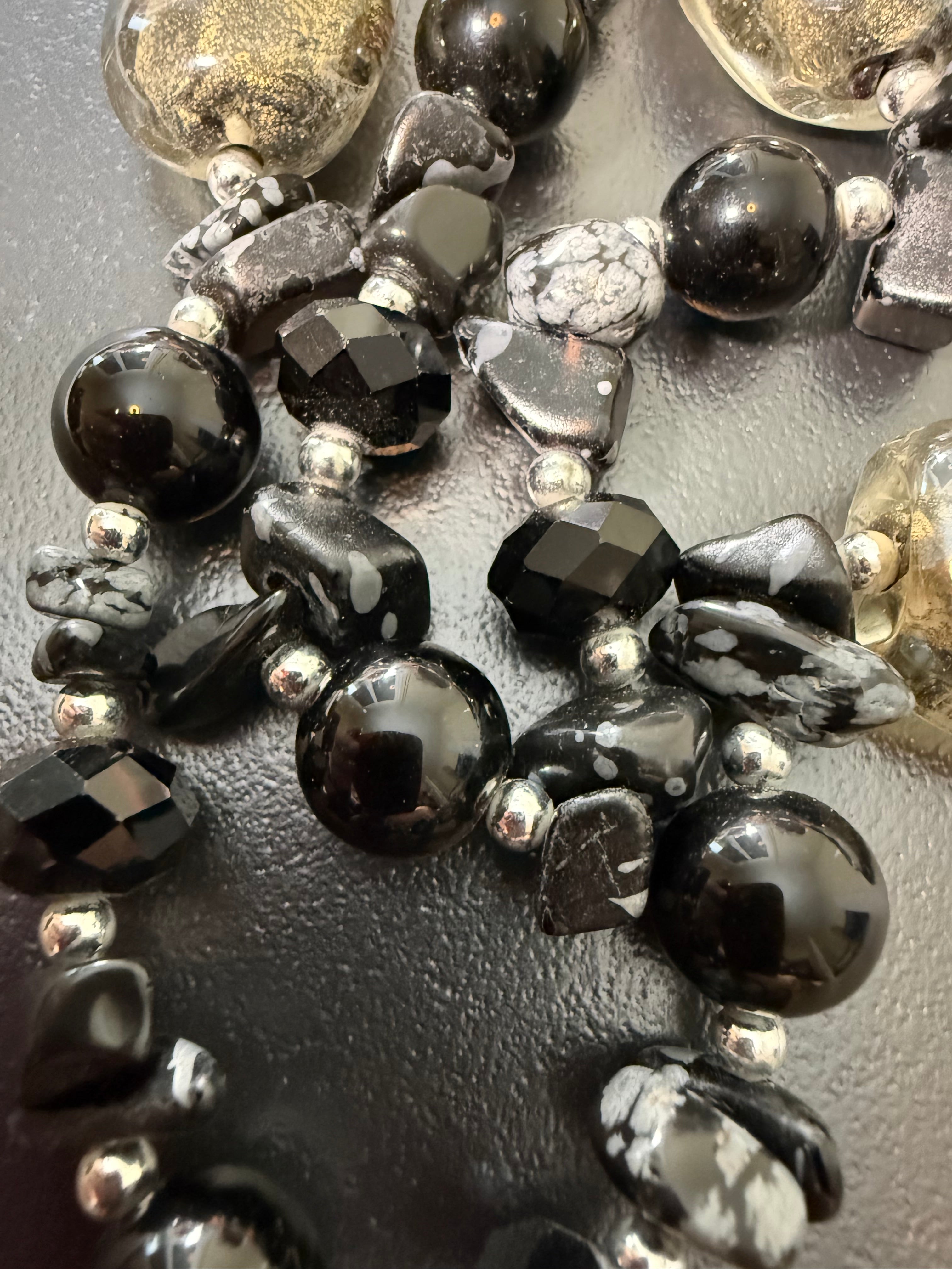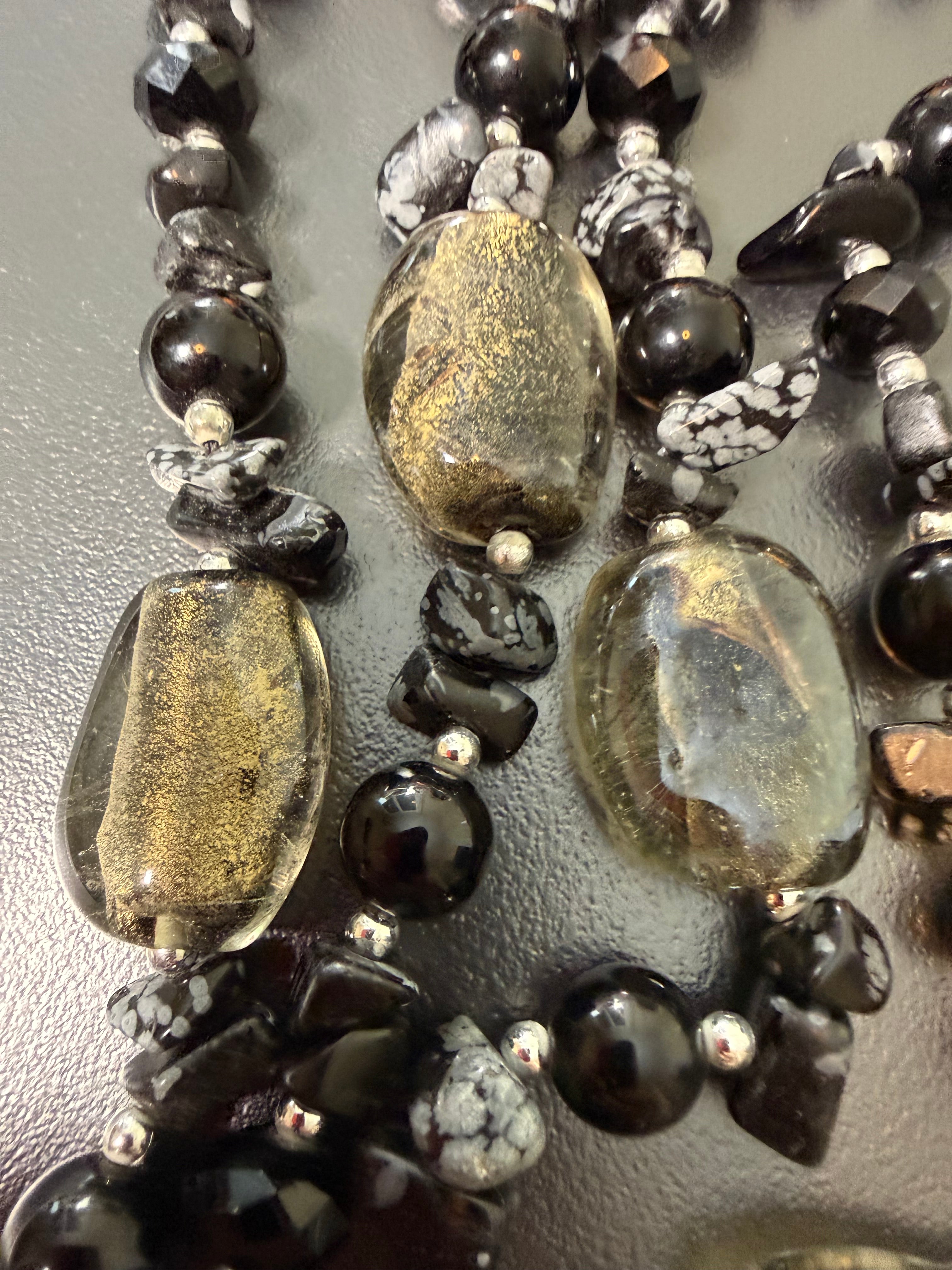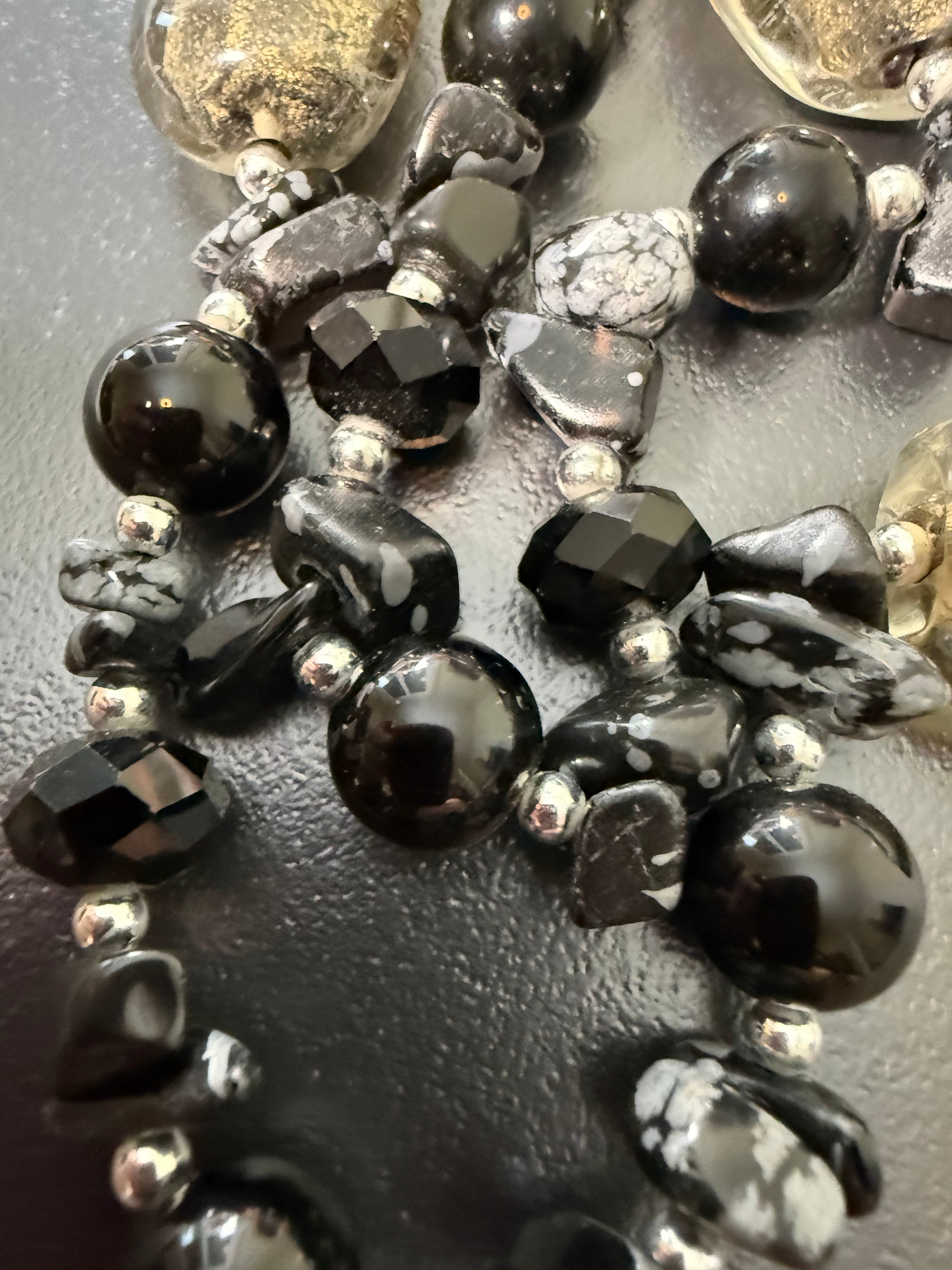 Joli et long collier en spinelle et verre soufflé circonférence 90 cm