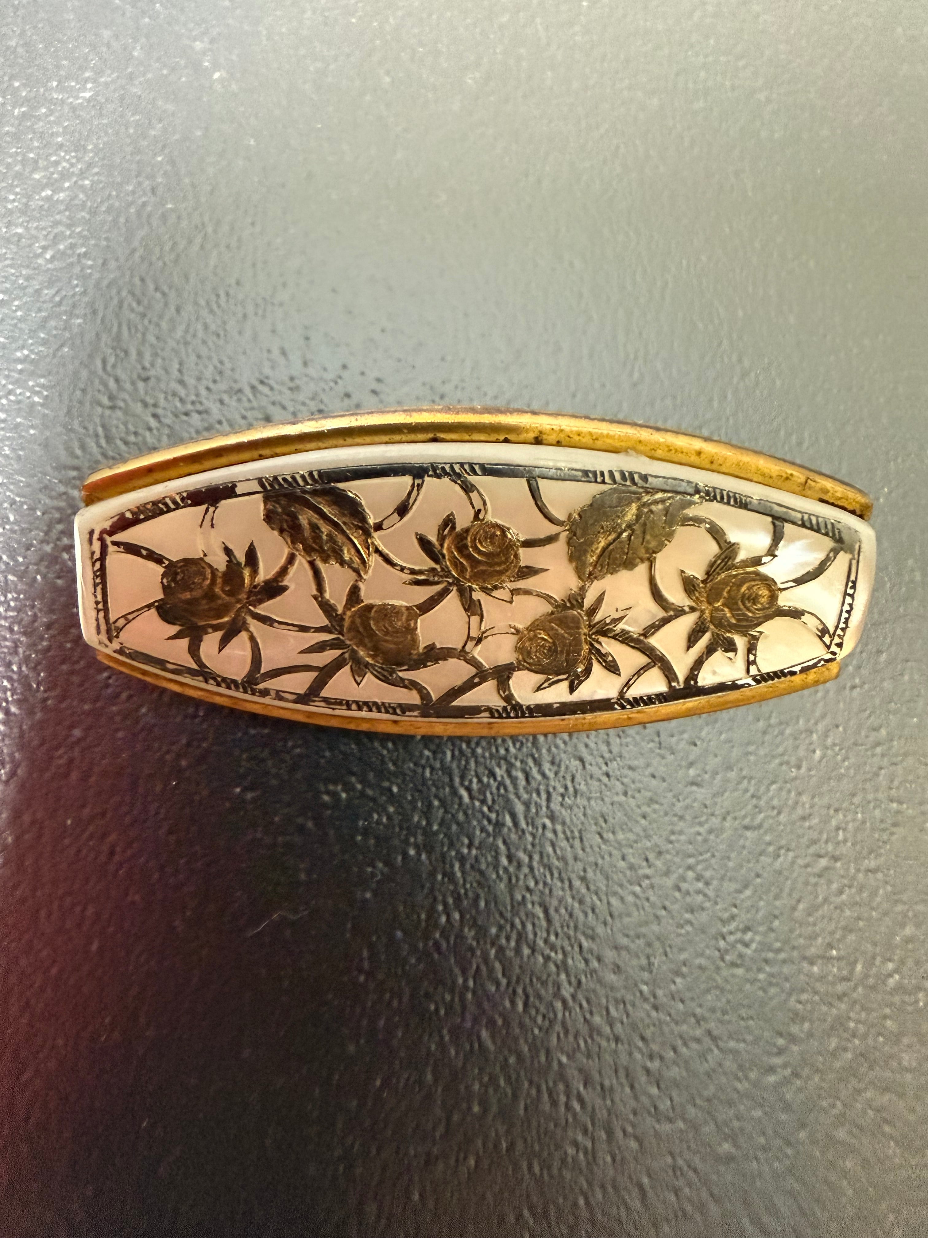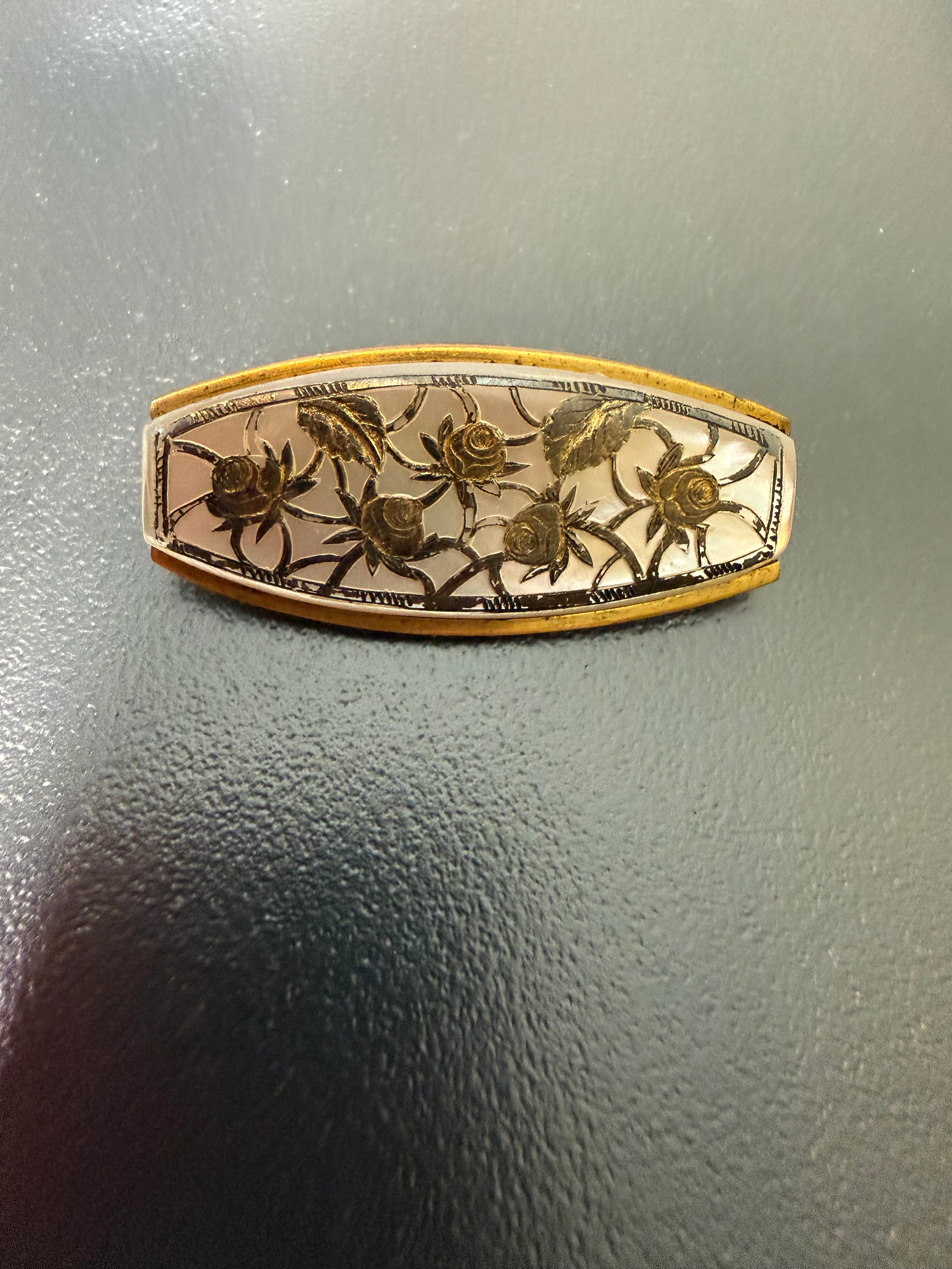 Jolie broche métal et nacre 4,6cm sur 2,1 cm