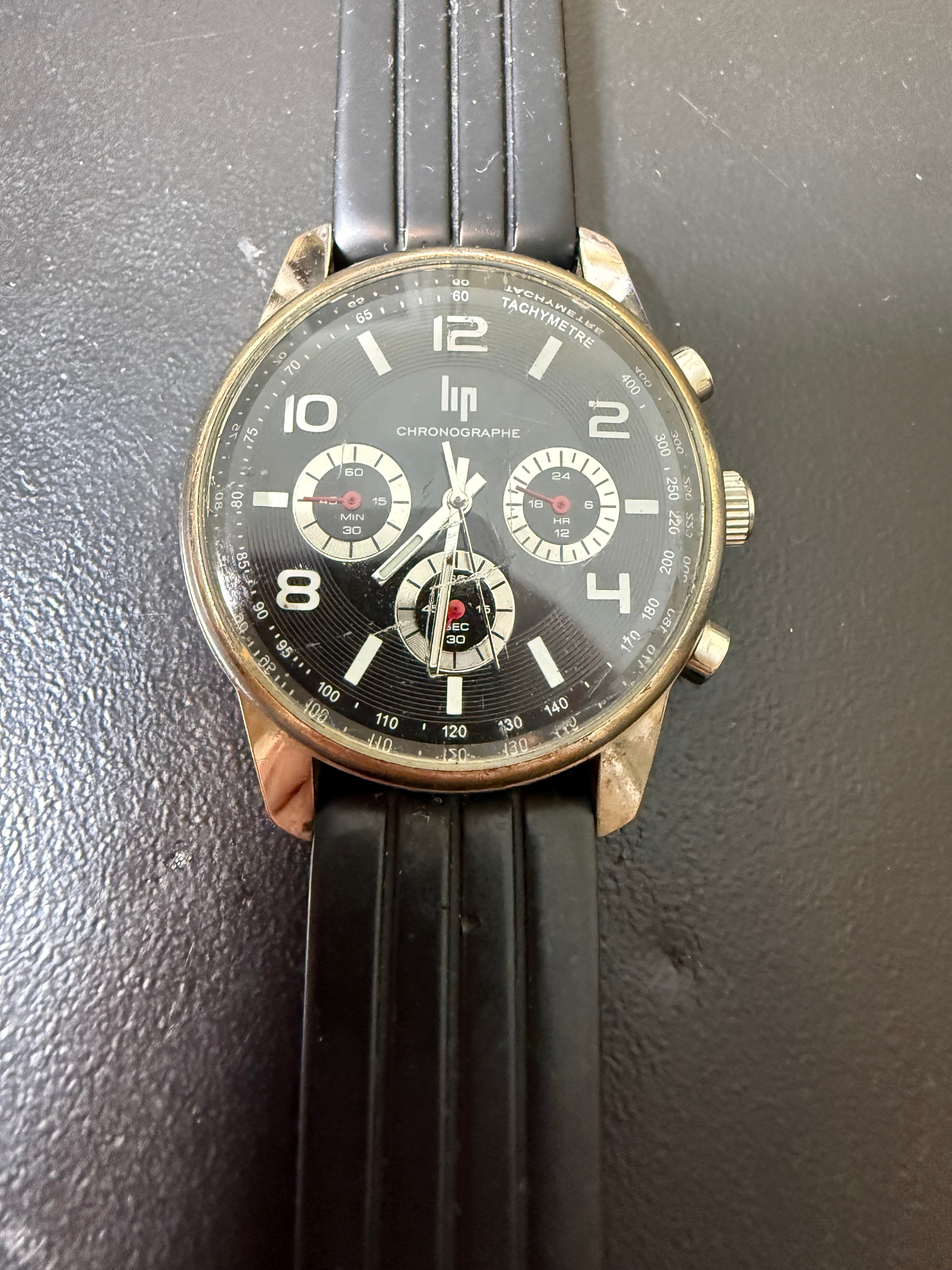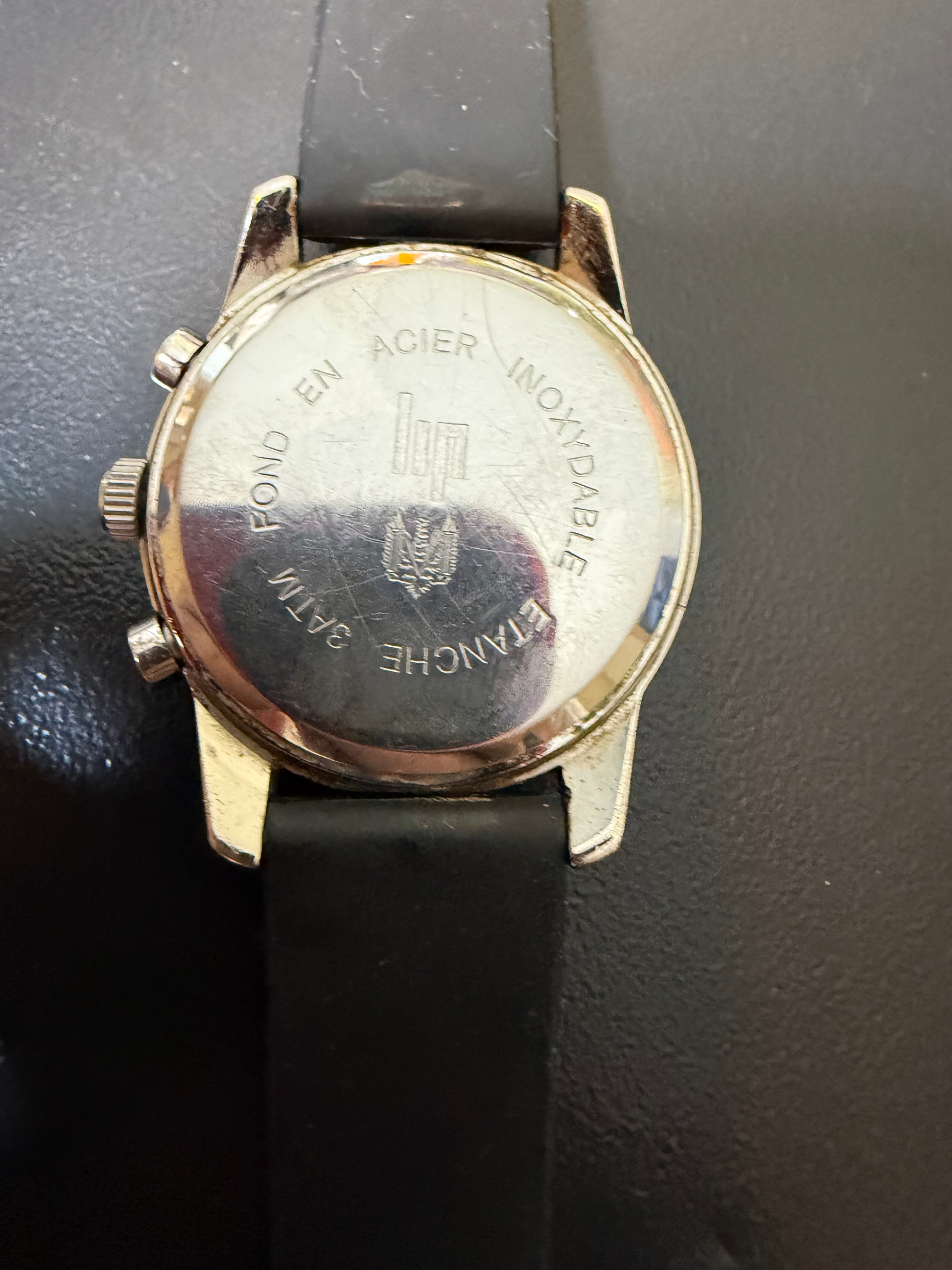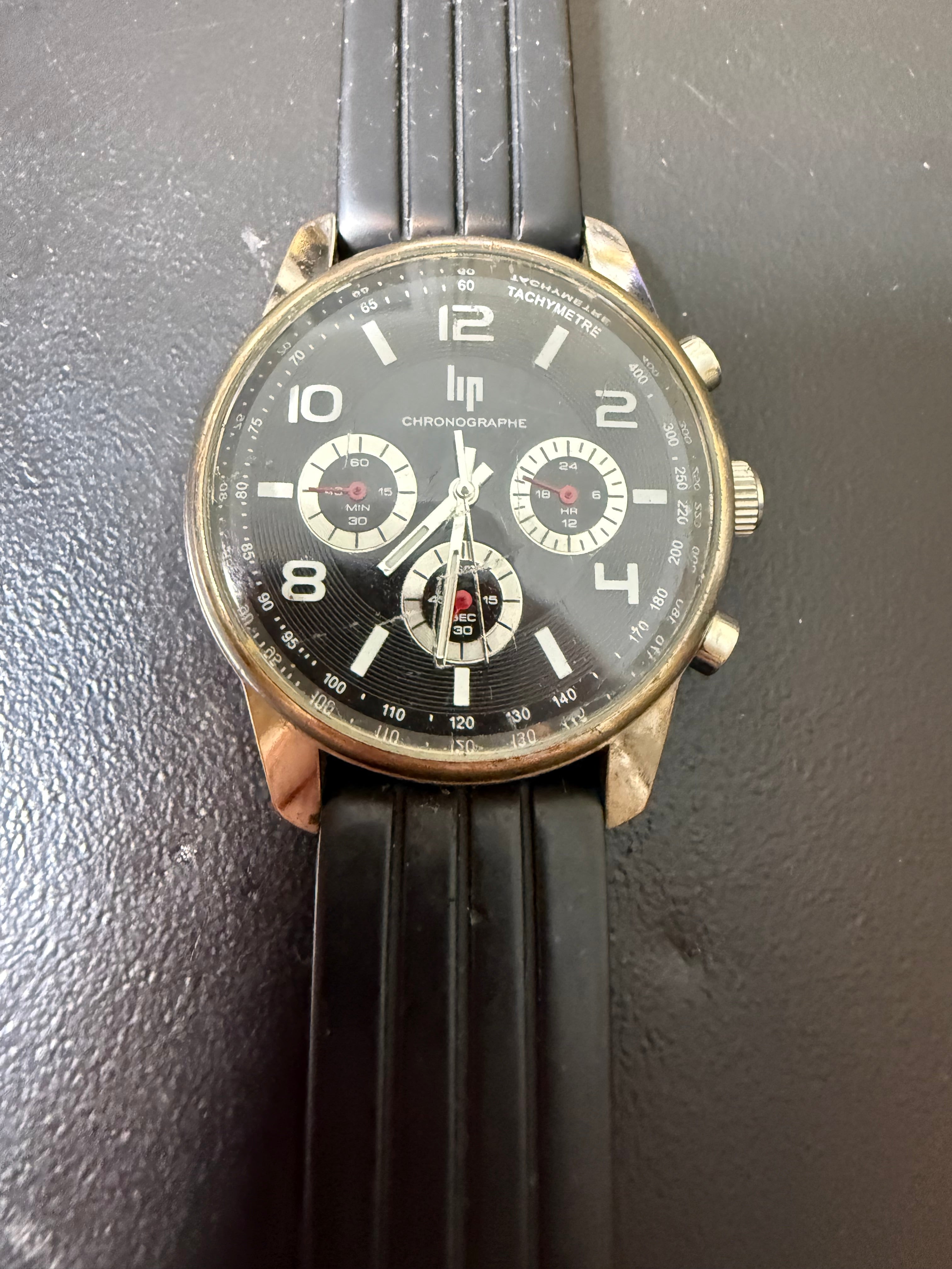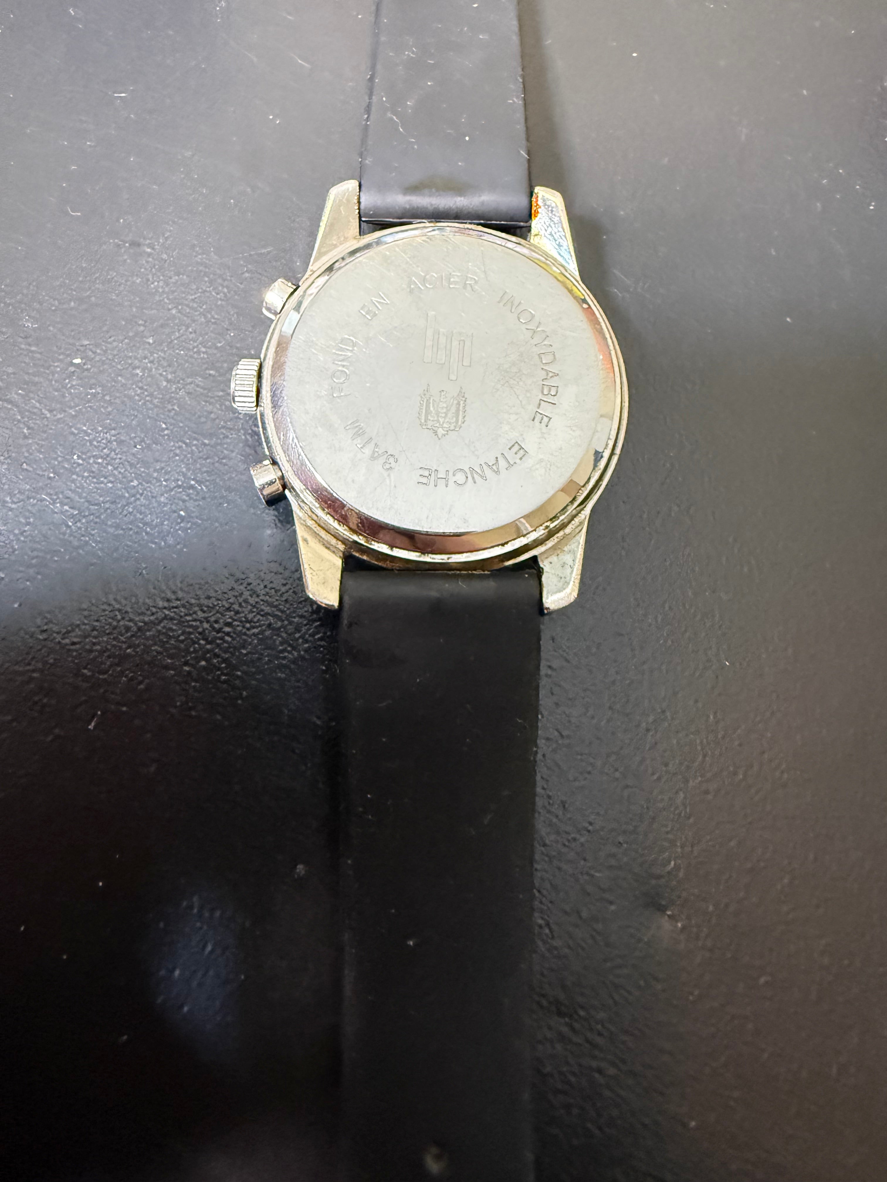 Montre Lip homme couronne 4 cm pile changée fonctionne bracelet caoutchouc
